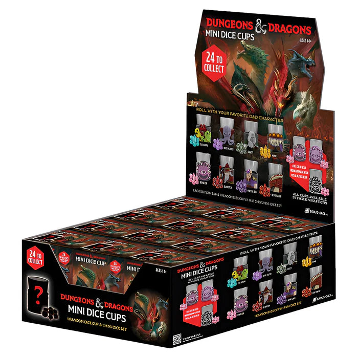 They’re back! The Dungeons & Dragons: Mini Dice Cups return in Wave 2, bringing nine new iconic characters to your table, including the Ultra Rare Syglar. Each glass cup features a brand-new sculpt and comes with its own mini dice set inside—perfect for collectors and adventurers alike.