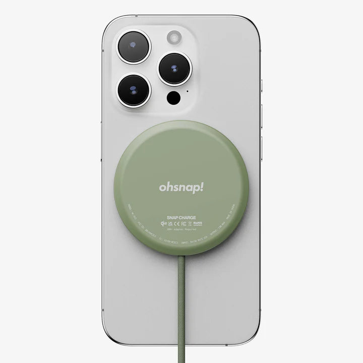 Premium, auto-aligning wireless charger. Featuring a premium stainless steel frame, Snapcharge is able to automatically align to and wirelessly charge your phone at 15 watts, making charging a breeze. MagSafe® + Snap Grip Compatible.
