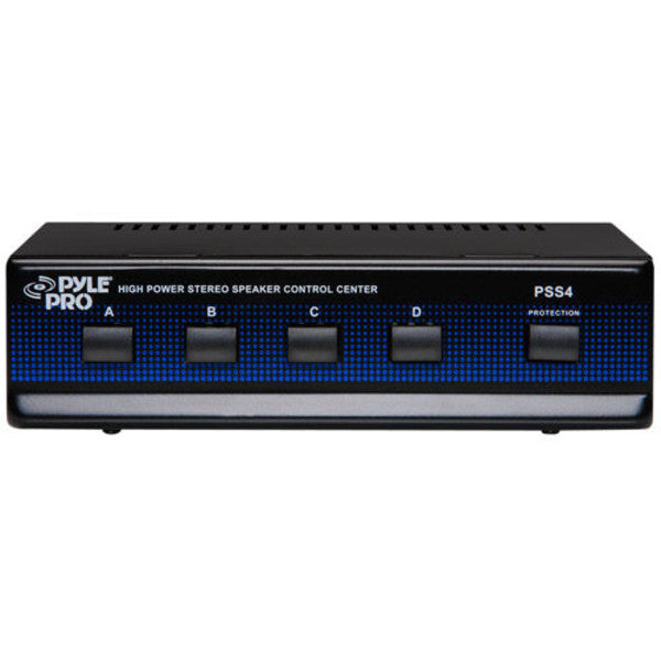 Enhance your stereo system's capabilities with the Pyle PSS4 4-Channel Speaker Selector. Connect up to four distinct speaker pairs and effortlessly switch between them. Designed to handle up to 100 watts per channel, it's a versatile addition to any audio setup.