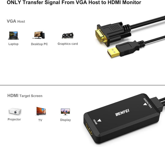 No reviewsAs a portable VGA to HDMI adapter, the BENFEI Compact Design Connector allows for easy connection between a computer or laptop with a VGA port and a monitor or HDTV with HDMI. With superior stability and...Regular price $27.99Regular price $27.99 -