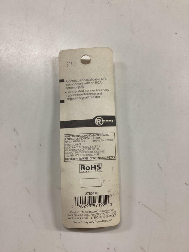 RadioShack RCA (Phono) Male To F-Connector (Coax) Female Audio Adapter (2 Pack)