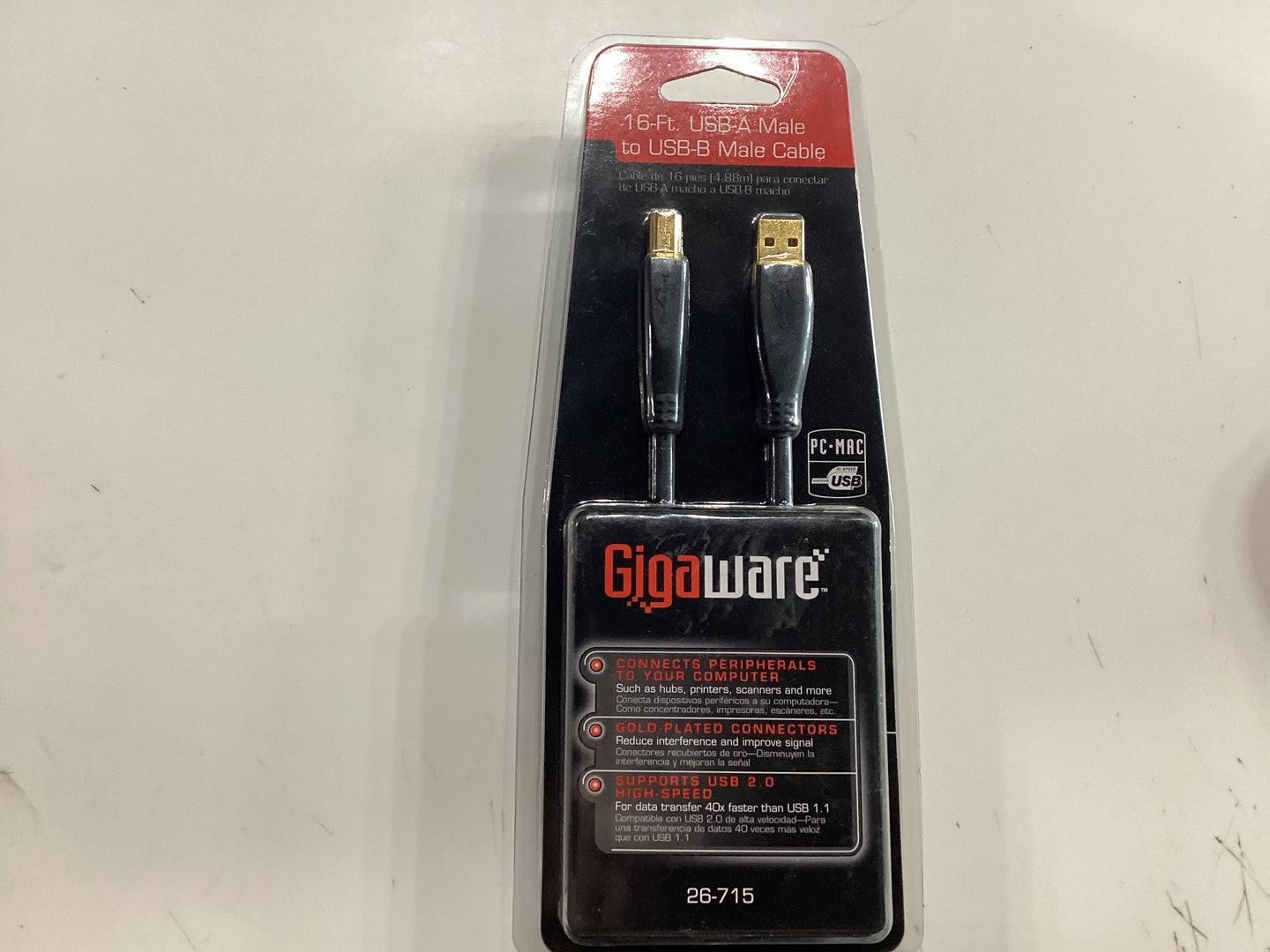 Connect your devices with ease using the Gigaware 16-FT. USB-A Male to USB-B Male Cable. Transfer data at high speeds and enjoy a reliable connection thanks to its quality construction. Perfect for printers, scanners, and other USB-B devices.