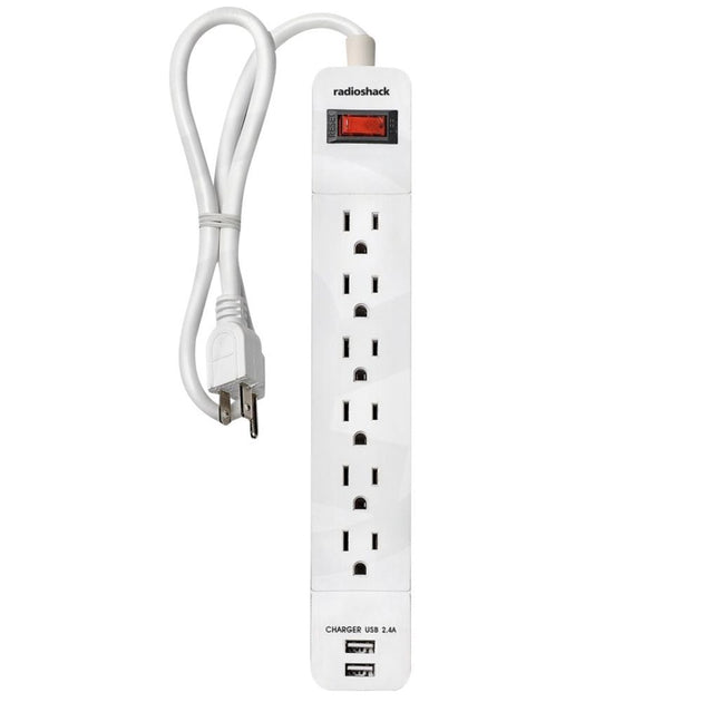RadioShack 6-Outlet Power Strip - 2 USB Ports White