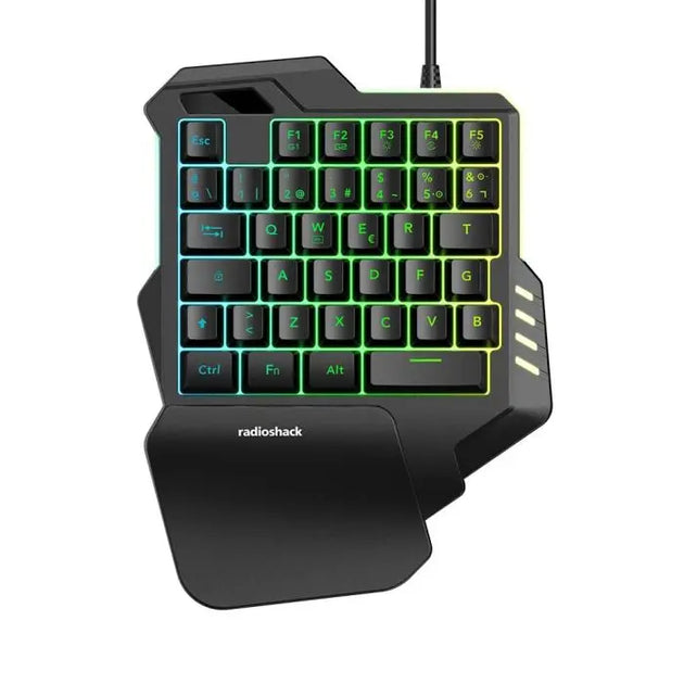 RadioShack One-Hand Gaming Keyboard, 35 Keys, RGB Backlit with 8 Colors, Macro Recording, Anti-Ghosting, USB-A Interface, 10 Million Key Lifespan, 1.6m Cable