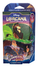 Two starter decks are available for the Disney Lorcana TCG set Shimmering Skies. Each prebuilt deck has 60 cards and features cards from two inks, each with distinct play styles. The two ink combinations are Amethyst & Ruby and Emerald & Steel. Each starter deck also includes a booster pack of 12 cards to start your collection.