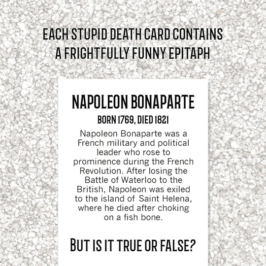 No reviewsHilarious Entertainment: Immerse yourself in the laughter-filled experience of Stupid Deaths – The Party Game designed for adults and teens aged 12 & up Dark Humor Delight: Perfect for those with a dark sense of humor,...Regular price $25.00Regular price $25.00 -