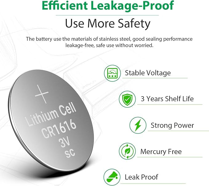 Ensure longer battery life and lasting power with the tested and certified CR1616 Button Cell. With strict quality control standards and grade A cells, this coin cell provides reliable performance for your electronic devices. CE and ROHS certifications guarantee its high quality.