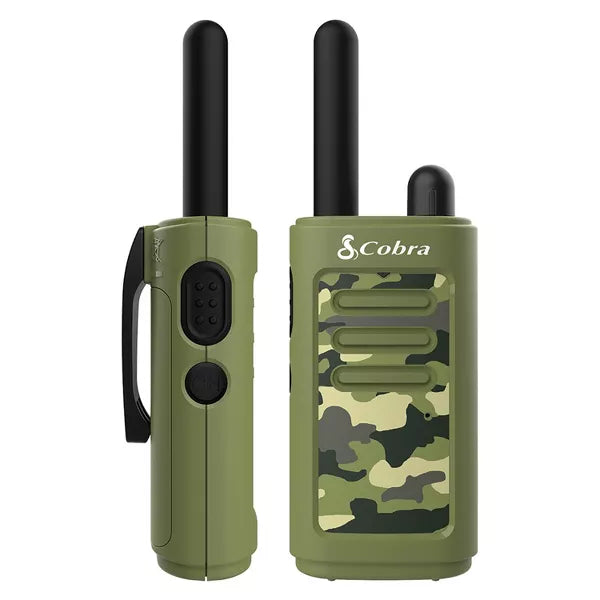 Engage in clear communications with the Cobra HE150 Kid's Hero Walkie Talkies. Specially designed for kids and families, these compact and ergonomically crafted devices come in a fun camo design, offering a 16-mile range and essential features like 2 channels, call alert, and battery saver. Perfect for indoor and outdoor adventures.