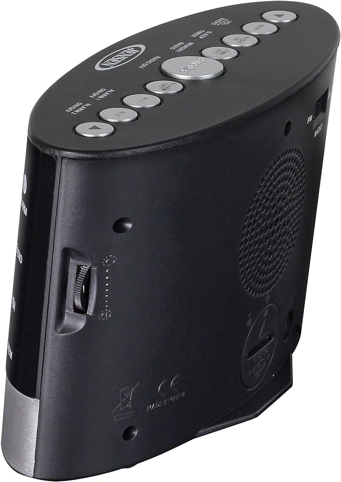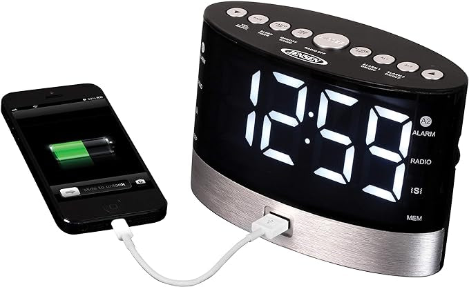 The JENSEN JCR-255 AM/FM Dual-Alarm Digital Clock Radio with Under-Pillow Vibrator is designed to effectively wake even the heaviest sleepers and those who are hard of hearing. The wireless vibrating remote, with 3 intensity levels, can reach up to 33 ft. from the alarm clock. You can wake up to vibration, radio, or an alarm and charge your phone overnight with the built-in USB port. With its 1.8 in. LED display, dimmer control, dual alarms, and preset AM/FM options, this clock radio is the perfect addition to your bedroom.