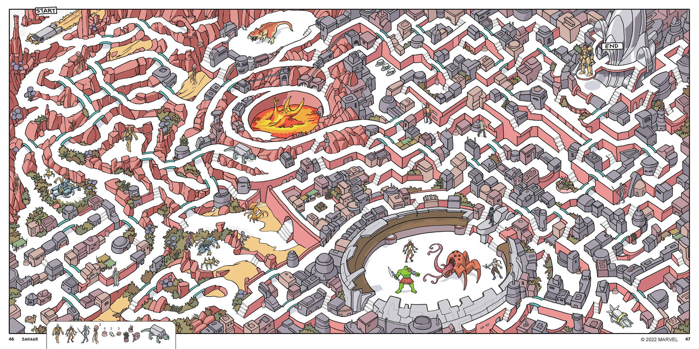 By the author of Star Wars Mazes, an exciting, new, all-ages, interactive activity book of mazes with findable elements taking readers into the pages of new and classic Marvel comics adventures. Explore exciting iconic locations and scenes with your favorite comics characters in this interactive, all-ages book of mighty Marvel mazes. Accomplish missions and locate key objects along the way while discovering the mysteries of Doctor Strange’s Sanctum Sanctorum, the S.H.I.E.L.D. Helicarrier, Wakanda, Asgard, and Doctor Doom’s Castle. Follow the Guardians of the Galaxy to Knowhere, help the Avengers fight the Skrulls aboard their flagship, face fearsome Sentinels with the X-Men in Days of Future Past timeline, and more!