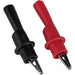 Easily and safely test your circuits with our Push-On Alligator Red/Black Clip Pair Test Leads. Simply add these slide-on clips to any voltmeter leads with pin probes for a hands-free testing experience. Stay secure and hands-free while testing your circuits with our durable and convenient clips.