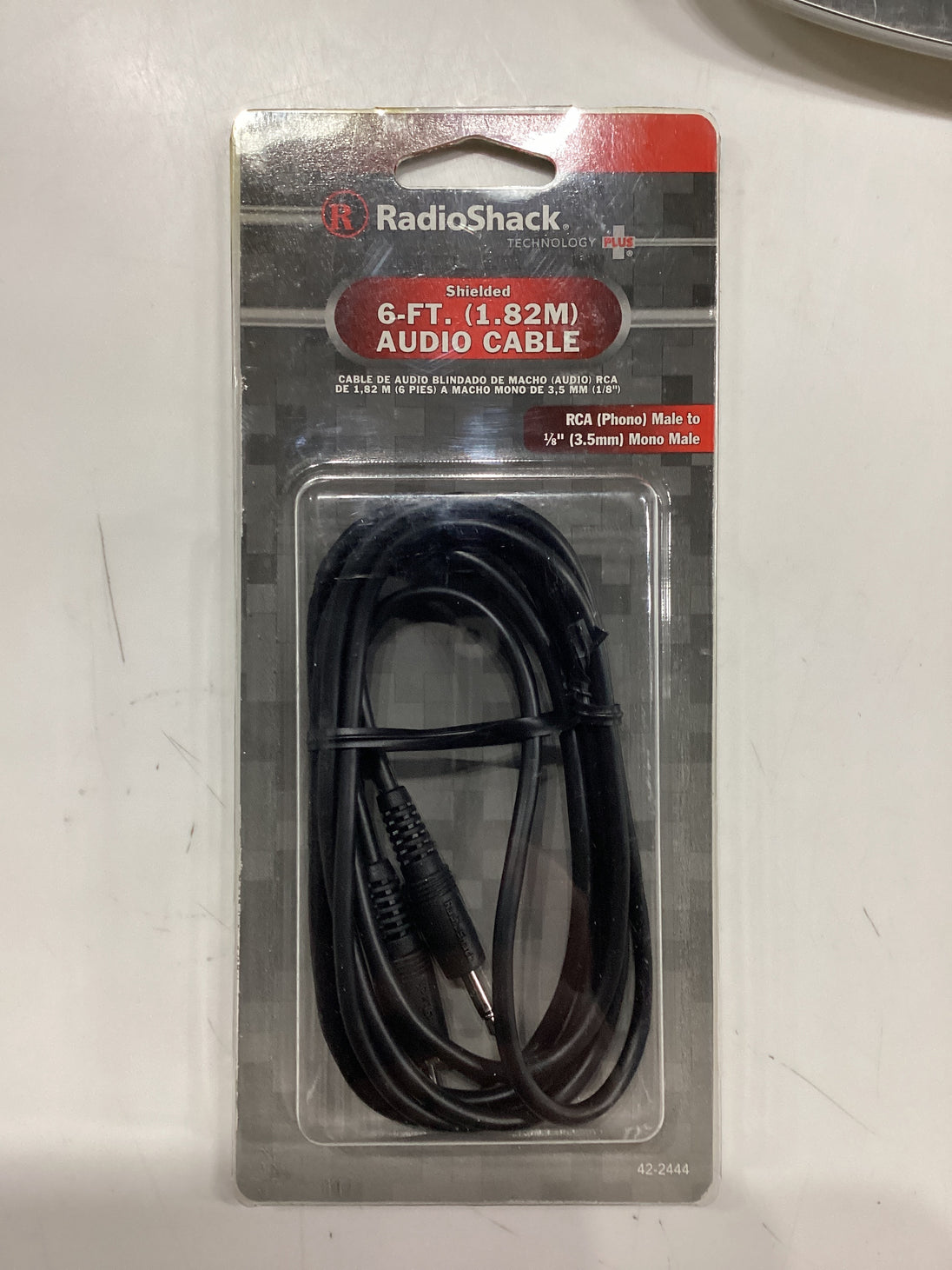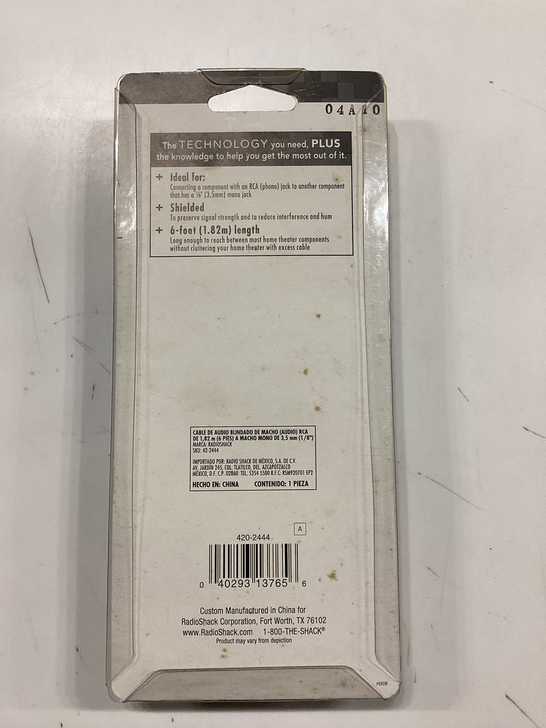 This RadioShack audio cable measures 6 feet (1.82 meters) in length and features an RCA male to 1/8" (3.5mm) mono male connection. Enhance your audio experience with seamless connectivity and reliable signal transmission.
