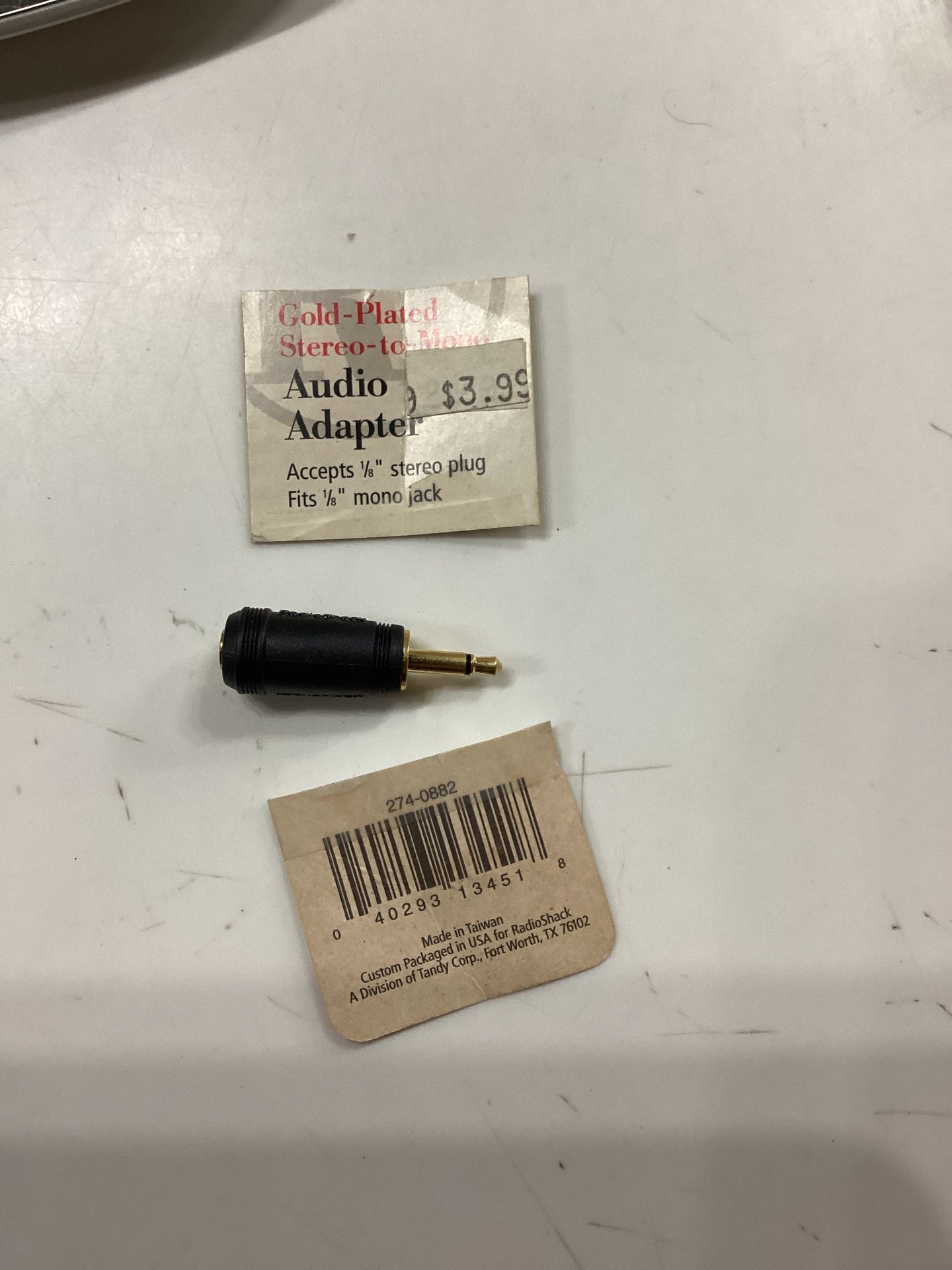 This high-quality gold-plated audio adapter from RadioShack is the perfect solution for converting stereo sound to mono. It accepts 1/8" stereo plugs and fits 1/8" mono jacks, providing a seamless and reliable connection. Enjoy crisp and clear audio with this professional-grade adapter.