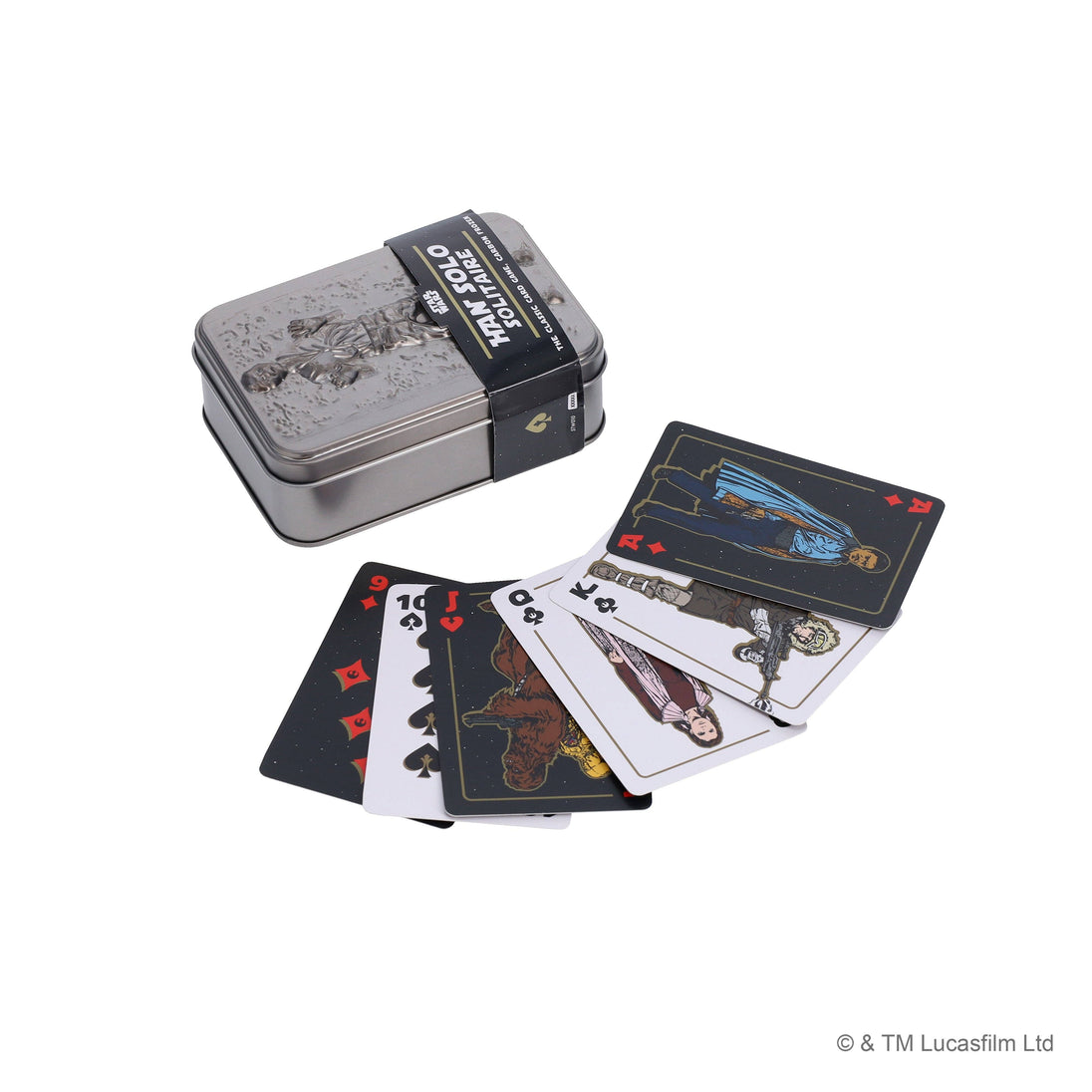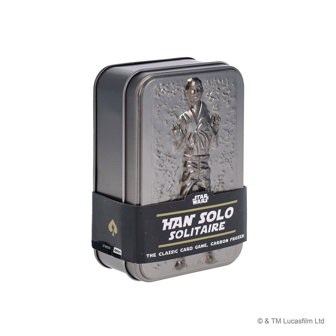 Think you've mastered the ways of the Force? Graduate from Padawan™ to Jedi Master™ with a roguish twist that makes the game hard to beat - though we'd never tell you the odds. Perfect for fans of Han Solo, Star Wars™, and Solitaire, this game is suitable for ages 8+, 1-2 players, and has an average 20-minute gameplay. Packaged in a portable tin depicting Han Solo frozen in carbonite, this card deck can be taken on your missions throughout the galaxy. Printed on FSC paper using vegetable inks.
