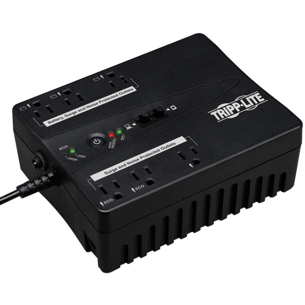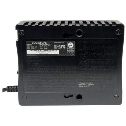 The Tripp Lite UPS 350VA 210W Eco Green Series is a high-efficiency UPS system designed to conserve energy. Automatically power down unused computer accessories with its unique feature, saving electricity compared to traditional models. It supports 3 battery-backed outlets and 3 surge suppression-only outlets, with 2 Eco outlets for additional energy-saving. Includes a USB port for configuration and ensures unattended system shutdown without data loss during extended power failures. Designed to sustain entry-level PCs up to 12 minutes during outages.
